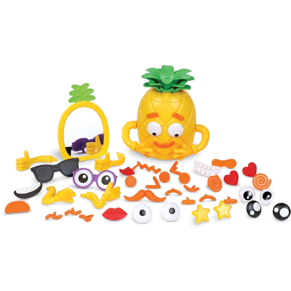 - ananasul are 2 laturi, astfel incat copiii sa poata construi expresii contrastante si sa foloseasca oglinda inclusa in set pentru a-si vedea propriile expresii faciale