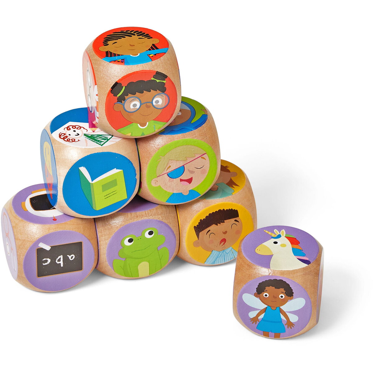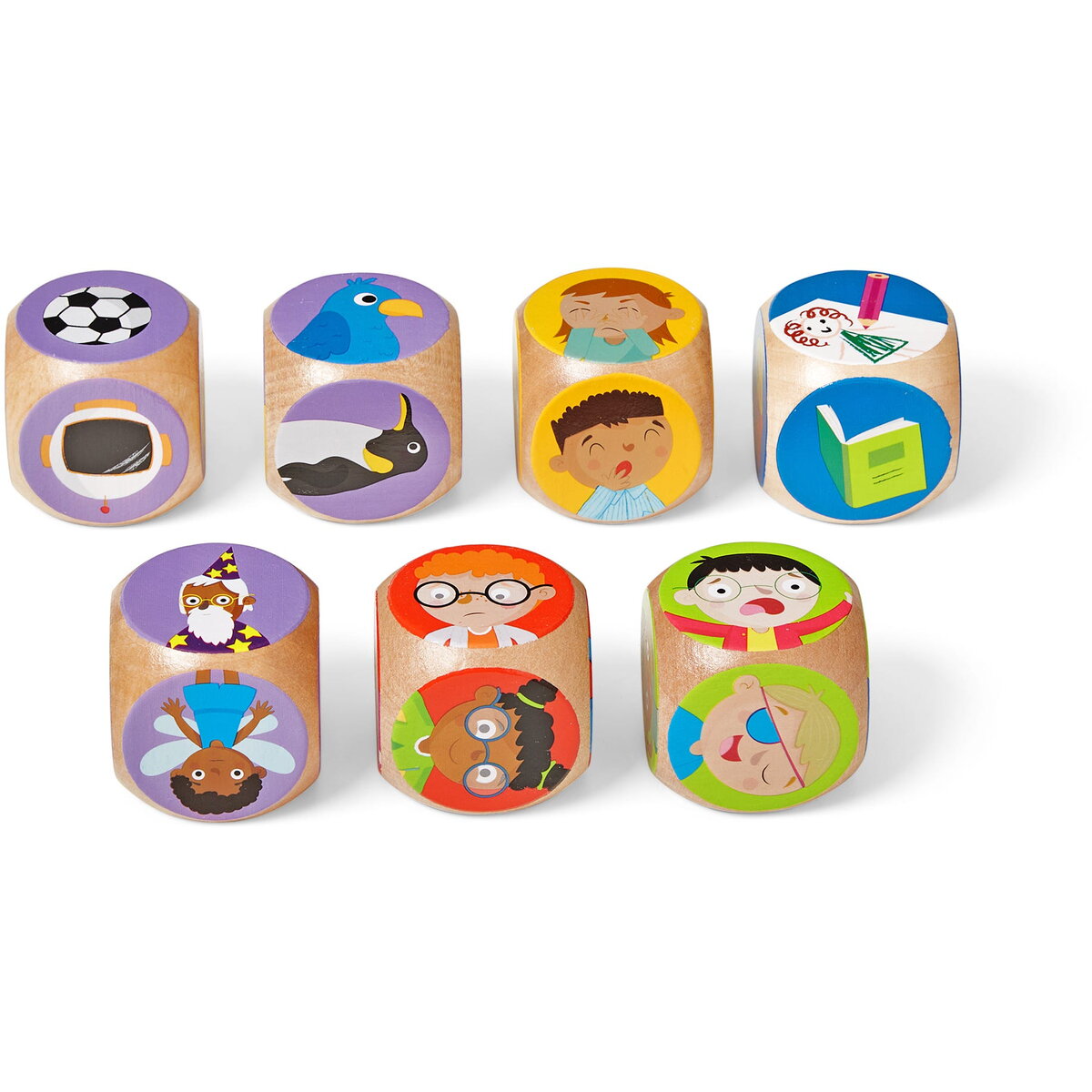 - cu setul de cuburi rezistente din lemn cu fete care exprima diferite emotii sau diferite personaje copiii vor putea da frau liber creativitatii pentru a patrunde in lumea emotiilor
