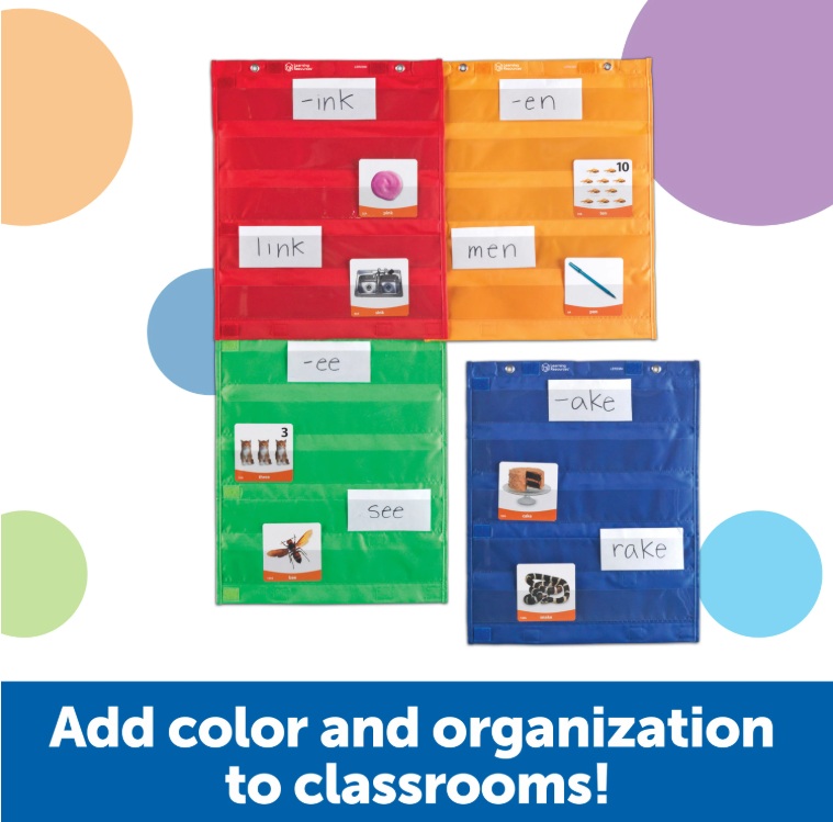 Utilizați cele 4 panouri colorate cu 5 rânduri de buzunare transparente, individual sau conectați-le pe verticală sau pe orizontală pentru a face un panou mai mare.